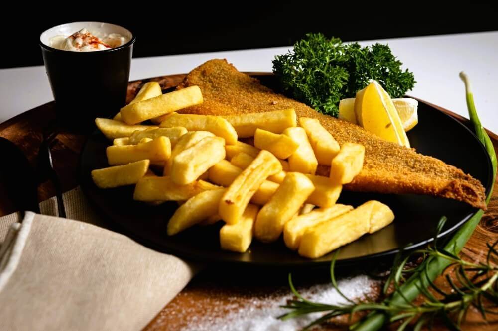 Crumbed Flake Fillet, topped with cheese, lettuce, onions & Cha Cha's tartare in a sesame seed bun with a side of chips and choice of 600ml drink