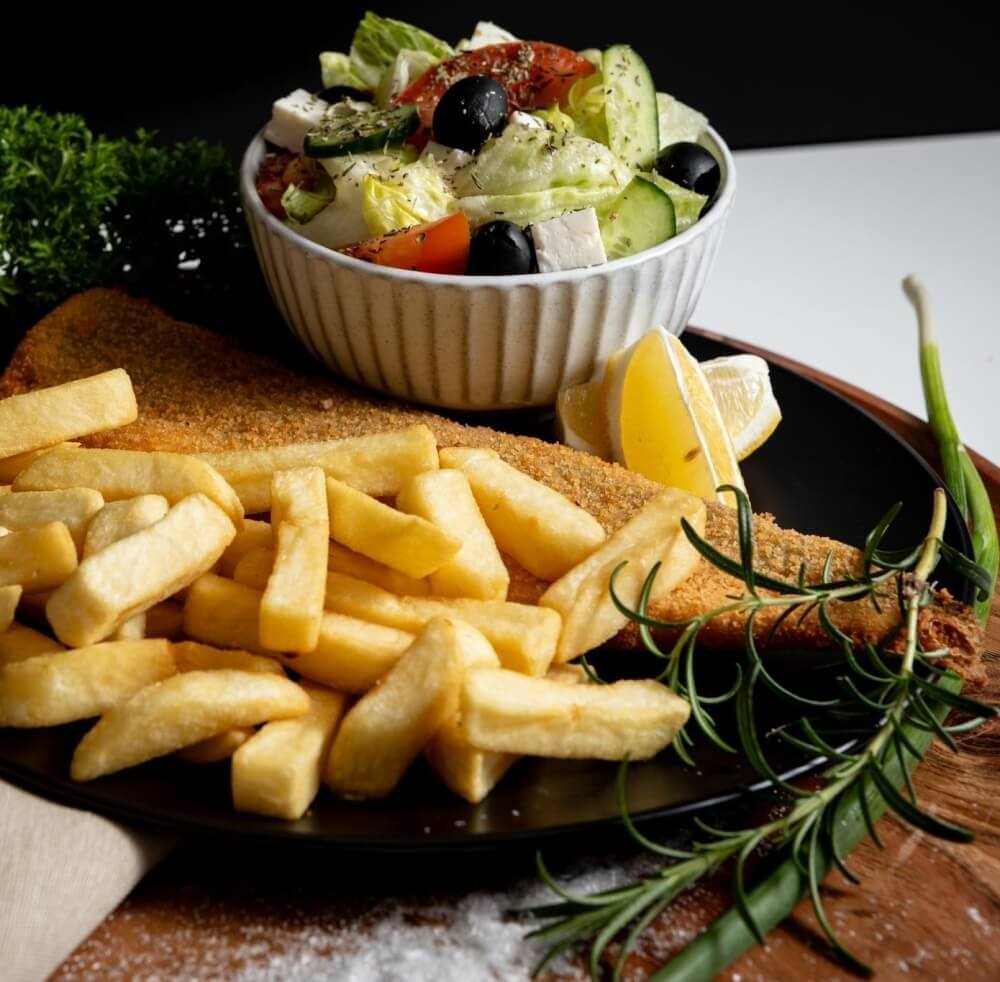 Choice of 1 crumbed flake or 1 crumbed whiting fillet served with a side of small salad of your choice