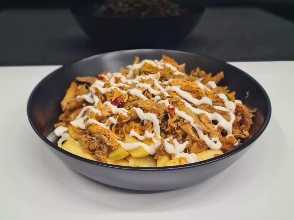Shredded chicken combined with Cha Cha's mayo in soft long bun with a side of chips and choice of 375ml can of drink