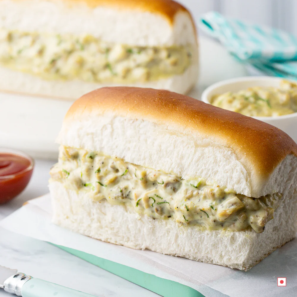 Shredded chicken combined with Cha Cha's mayo in soft long bun