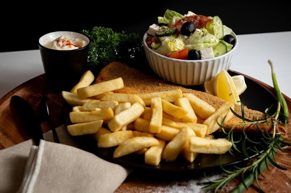 1 chicken schnitzel with a side of small salad of your choice